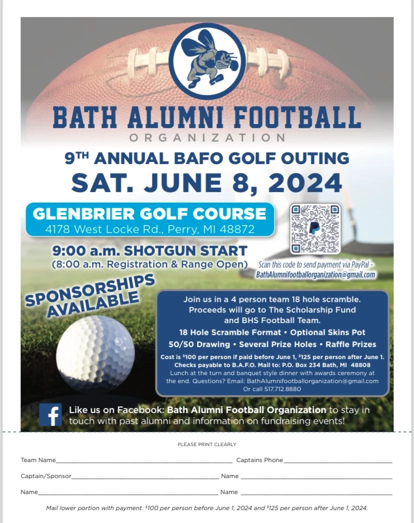 BAFO Saturday, June 8, 2024 9:00 AM 4:00 PM Glenbrier Golf Course 4178 West Locke Road Perry, MI, 48872 United States (map) Google Calendar ICS
